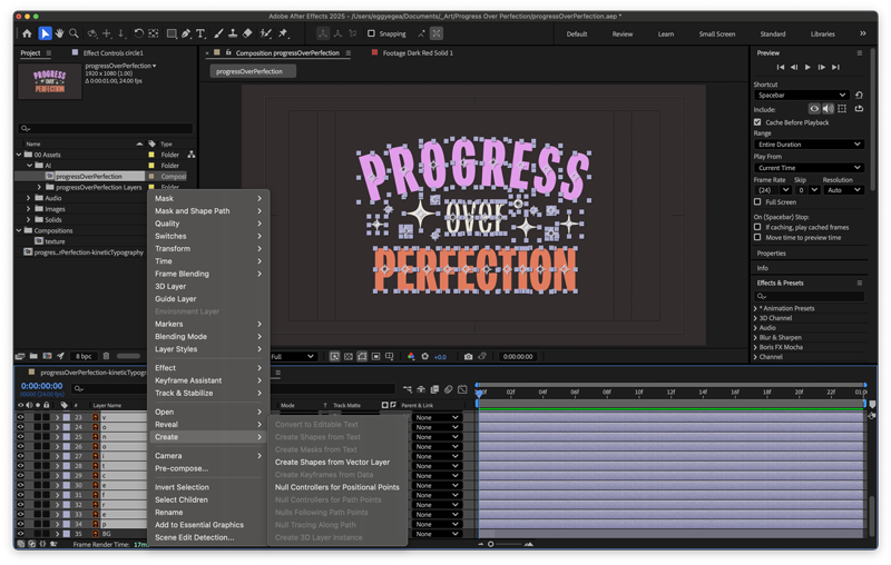 Progress isn’t always about getting everything right the first time—it’s about showing up, trying, and learning along the way. That’s the idea behind my latest kinetic typography experiment, Progress Over Perfection, where I animated each letter in After Effects as a reminder that creativity is built step by step.